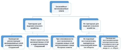 Направления дальнейшего использования бесхозяйных мелиорируемых земель приведено в схеме, представленной на Рисунке. 1.